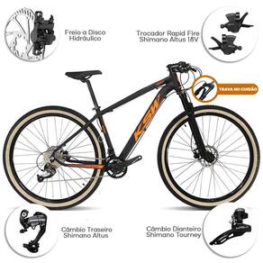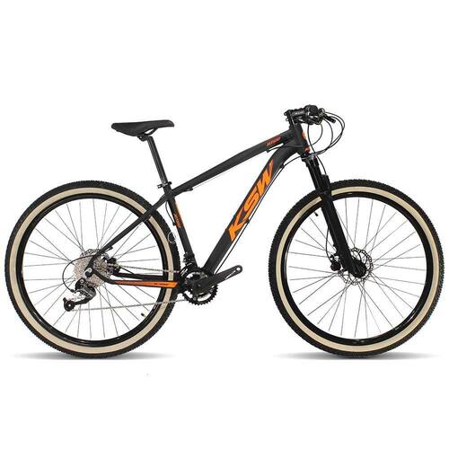 Bicicleta aro 29 KSW 18 velocidades Câmbio Shimano Altus Trava Guidão - Cor: Preto+Laranja | Tamanho: 17