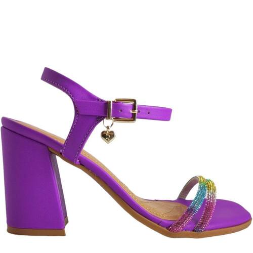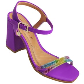Sandália Feminina Casual Social com Strass Bico Quadrado Salto Grosso Ramarim 2341201 - 38 - Roxo