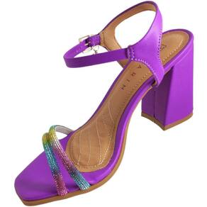 Sandália Feminina Casual Social com Strass Bico Quadrado Salto Grosso Ramarim 2341201