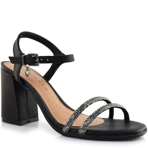 Sandália Feminina Casual Social com Strass Bico Quadrado Salto Grosso Ramarim 2341201