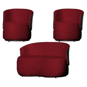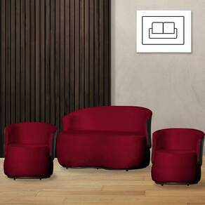 Kit 2 Poltronas e 1 Namoradeira Decorativa Orgânica Beatriz Veludo Composê Corino Marrom - Estopar - Vermelho