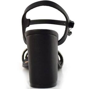 Sandália Feminina Casual Social com Strass Bico Quadrado Salto Grosso Ramarim 2341201 - Preto - 35