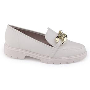 Sapato mocassim feminino Beira Rio 4283.105 Turim é um modelo Oxford moderno, que está super em alta com praticidade e conforto. Seu cabedal é fabricado em material sintético com acabamento liso por costuras e tem como detalhe uma corrente decorativa no peito do pé, seu bico é arredondado, o calce deste modelo é slip on, para calçar basta colocar o pé. A palmilha do modelo é fixa, macia, almofadada e revestida em material têxtil com a logo da marca. O solado é tratorado com 3cm de altura traseiro e 2cm de altura frontal, possui frisos para maior segurança e para calçar basta colocar o pé.