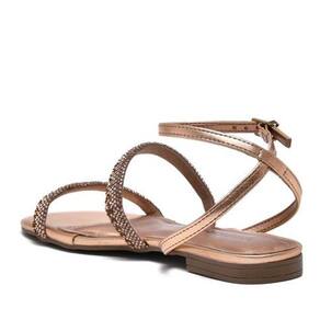 Além disso, tiras confortáveis e revestidas de Strass envolvem o peito do pé e os dedos, adicionando um toque de elegância ao calçado. Essa combinação de elementos oferece um visual único e sofisticado, tornando a sandália rasteira Via Marte uma escolha irresistível para quem busca conforto e estilo em cada passo.