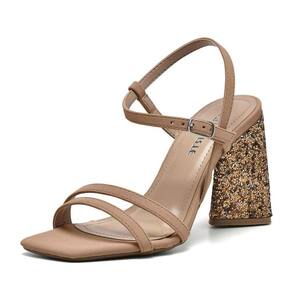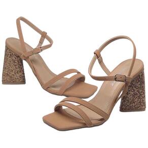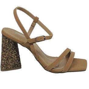 Sandália Salto Medio Via Marte Brilho Festa 23-9201 - 34 - Bege