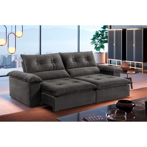 Suavidade e conforto em sua casa com o Sofá Atenas que possui encosto reclinável, assento com Pillow de molas ensacadas, percinta elástica tipo italiana para maior durabilidade, fibra siliconada, assento retrátil com rodízios que facilitam seu movimento.