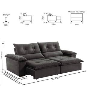 Dimensões: Altura: 112 cm Largura: 180 cm Profundidade Fechado: 120 cm Profundidade Aberto: 180 cm -com encosto reclinado- Peso: 85 kg