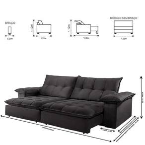 Dimensões: Altura: 112 cm Largura: 250 cm Profundidade Fechado: 120 cm Profundidade Aberto: 180 cm -com encosto reclinado- Peso: 102 kg