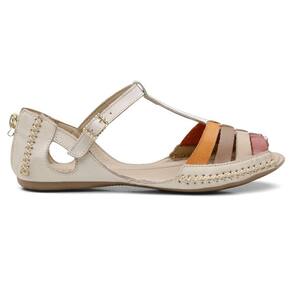 Sandalia Rasteira Conforto Feminina Couro Tiras Coloridas Salto Baixo Fechamento Ziper e Fivela - 35 - Bege