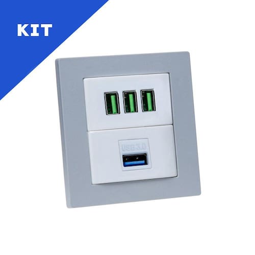 Kit 2 Espelhos de Tomadas Duplo Reto 3 USB 5.2A 1 Usb Dados - Cor: Cinza