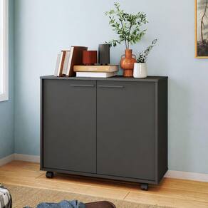 Balcão em MDP com 2 Portas 2 Prateleiras e 4 Pés com Rodízios BRV Móveis - Preto