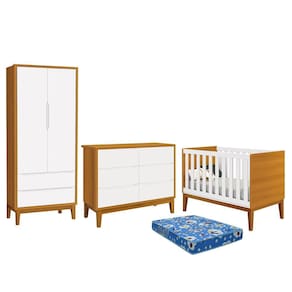 Dormitório Infantil Classic 2 Portas, Cômoda 6 Gavetas, Berço com Pés Amadeirado e Colchão - Reller Móveis