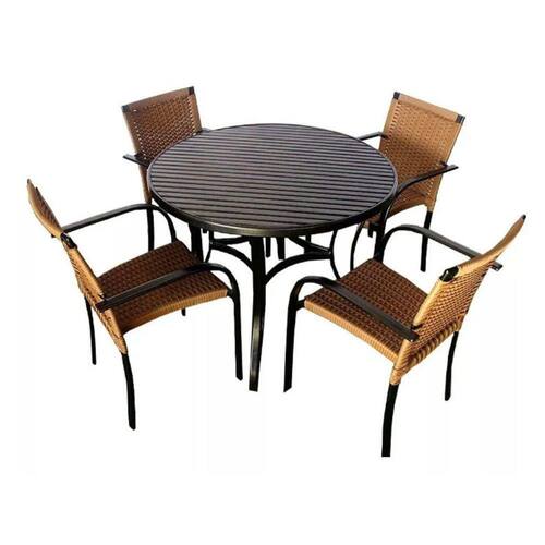 6 Cadeiras Ascoli e Mesa Tampo Ripado 1,40m Alumínio Jardim, Piscina, Área - Marrom Cacau