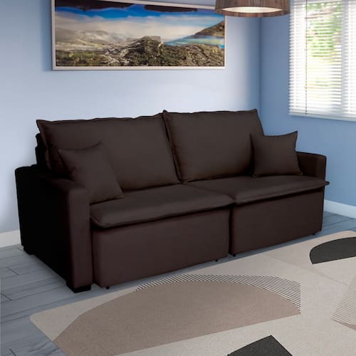 Sofá Cama Tóquio Com Almofadas Soltas 2.20m - Marrom