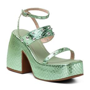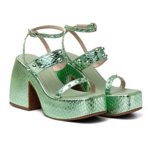 Sandália Feminina Meia Pata Salto Alto Confortável Fivela - 38 - Verde Claro