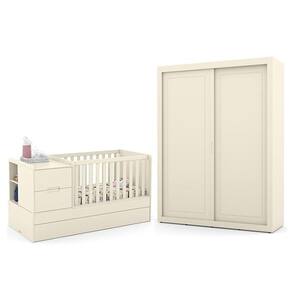 Jogo de Quarto Infantil Tutto New com Guarda Roupa 2 Portas de Correr e Berço Multifuncional Formare - Matic Móveis - Off White