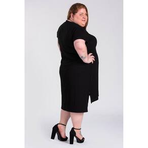 Vestido Feminino Plus Size Canelado Estampado Abertura Laterais - Serena Preto - G8 - Vestido Feminino Plus Size Canelado Estampado Abertura Laterais Parte de Trás Alongada Mulet - Serena