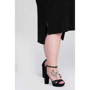 Vestido Feminino Plus Size Canelado Estampado Abertura Laterais - Serena - Preto - G5