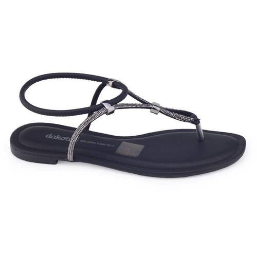 Sandália feminina Dakota Y6162 é moderna e confortável, fabricada em material sintético, apresenta toda a qualidade da marca. Esta sandália é rasteira e destaca-se em looks para passeios e também tem conforto para o dia a dia. Seu cabedal tem como destaque tiras com acabamento em strass no peito do pé. O calcanhar neste modelo é aberto e o calçe é fácil, pois basta encaixar o pé, sua tira do tornozelo é elástica facilitando o calçe, a palmilha fixa é almofadada, com a Logo da marca. O salto rasteiro possui 1cm de altura revestido em verniz, solado com frisos para maior segurança.