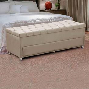 Calçadeira Sapateira Baú Munique 160cm de Largura Veludo Star Confort - Bege Claro