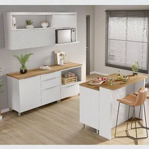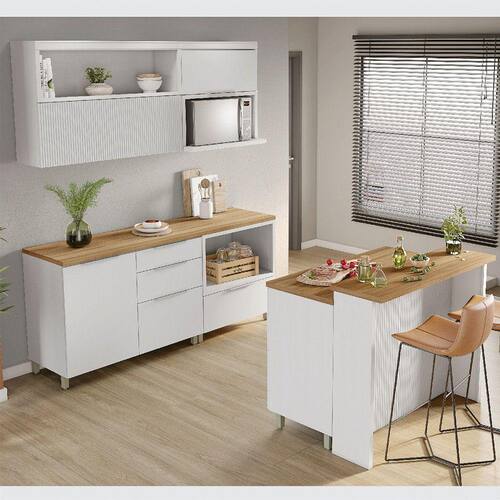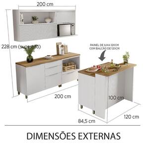 Diferenciais únicos: Modernas portas com abertura basculante e pistão a gás, sendo uma de 120cm canelada, tendência, sofisticação e beleza. Dobradiças com freio anti-impacto slow motion, porta de 60 cm com 3 dobradiças, conforto e garantia de durabilidade. Modernos puxadores de alumínio, tendência, sofisticação, durabilidade e beleza. Corrediça Telescópica Abertura Integral: Robusta e com três estágios, esta corrediça é ideal para o uso diário, facilitando o acesso aos utensílios. Ergonômico gavetão com laterais e traseiro altos para armazenagem com segurança de utensílios e mantimentos. Gaveta porta condimentos e Gaveta com organizador de talheres, conforto e praticidade no uso diário.