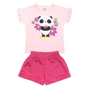 Shorts: O conjunto inclui shorts confeccionado em moletinho liso ou trabalhado conforme a cor escolhida dependendo das preferências e do estilo da criança. Os shorts possuem cintura elástica para facilitar a colocação e são confeccionados em tecido leve e respirável.