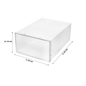 Caixa organizadora tem tampa transparente para fácil visibilidade. Design de combinação livre e fácil de mover. Essa caixa com certeza, deixará as funções do dia dia mais prática, além de enfeitar e embelezar o seu lar e proteger seus calçados.