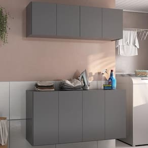 Transforme sua lavanderia num ambiente funcional e elegante com o Conjunto Lavanderia Suspenso Multiuso Armário Aéreo e Balcão 4 Portas Multimóveis MP5052. Fabricado em MDP (15mm) com acabamento acetinado (cerca de 20% de brilho), garante durabilidade e resistência. Composto por um balcão e um armário aéreo com 4 portas e prateleiras, este kit oferece amplo espaço interno para organizar produtos de limpeza e outros itens de lavanderia. O balcão ainda permite apoiar suas roupas, deixando o ambiente organizado, e é suspenso, facilitando a limpeza do ambiente. O design clean confere um visual moderno e estiloso ao kit.
