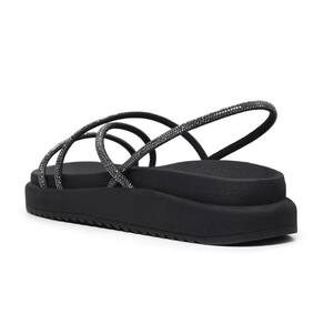 Papete Feminina Strass Brilho Tiras Confortável Moderno - 35 - Preto