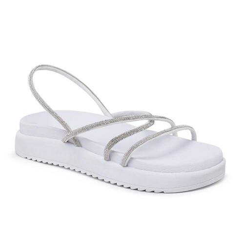 Papete Feminina Strass Brilho Tiras Confortável Moderno - 39 - Branco