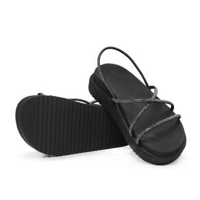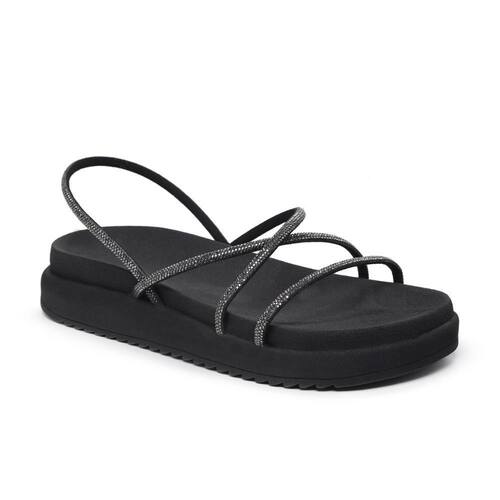 Papete Feminina Strass Brilho Tiras Confortável Moderno - 40 - Preto