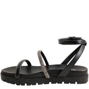 Sandália Feminina Papete Casual com Strass Via Marte 23-17202 - 38 - Preto
