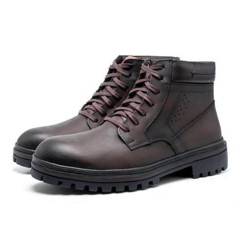 Coturno Masculino Bota Couro Solado Borracha Cadarço - 38 - Marrom