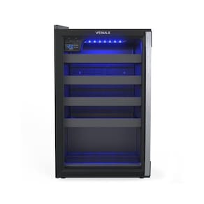 As champanheiras Venax possuem um requinte único. O modelo 100 tem capacidade de 24 garrafas, degelo automático, iluminação em LED na cor azul e prateleiras deslizantes que permite a melhor acomodação das bebidas. Com ela, as suas espumantes estarão no ponto certo para o momento de celebração!