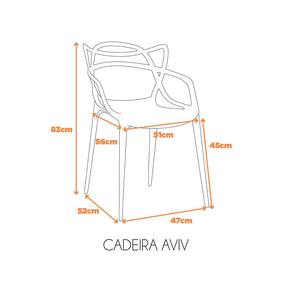 Imponente e detalhista, a cadeira Aviv é ideal para ser utilizada em sua residência ou ambientes corporativos. Por ser uma cadeira monobloco, ela é empilhável, resistente e de fácil limpeza e manutenção. Sua variedade de cores permite que seja combinada com vários ambientes.