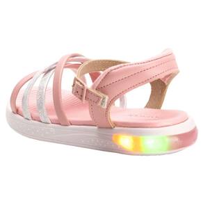 A Sandália Infantil Led Baby Molekinha é confeccionada em Napa Turim com detalhe envernizado glow, acabamento em costura, fechamento por fivela de ajuste, palmilha em EVA e solado em borracha antiderrapante com Luz de Led que acende a cada passo.