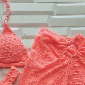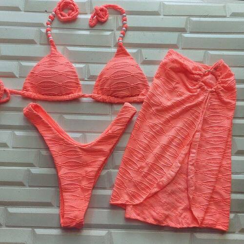 Biquíni Cortininha Com Saia Texturizado Kit 100240 - Laranja - M