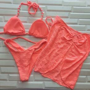 Biquíni Cortininha Com Saia Texturizado Kit 100240 - Laranja - GG