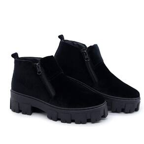 Bota Casual Feminina Veludo Couro Tratorado Cano Curto - 38 - Preto