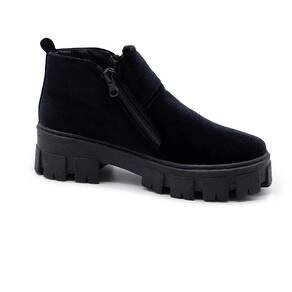 Bota Casual Feminina Veludo Couro Tratorado Cano Curto - 37 - Preto