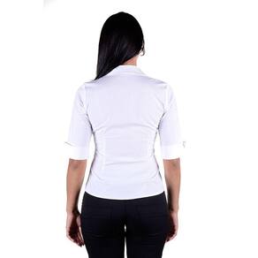 Especificações: Camisete Feminina Profissional Manga 3/4 Tecido de Poplim - Branca