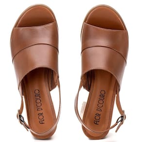 Sandalia Fechada Couro Feminina Salto Quadrado Confortavel Antiderrapante Extra Macia Elegante - 37 - Marrom