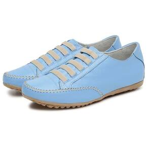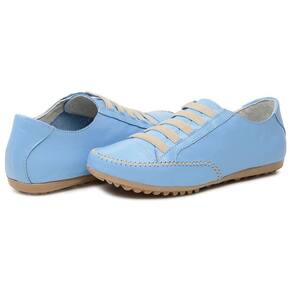 Tenis Sapatilha Feminina Couro Conforto Palmilha EVA Macia Solado Borracha Com Cadarço Cano Curto - 35 - Azul Petróleo