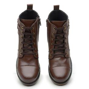 Bota Coturno Feminino Salto Baixo Cano Curto Detalhe Fivela Lateral Macia Confortavel - 36 - Marrom