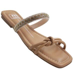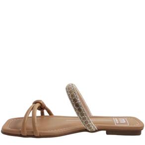 Tamanco Rasteira Feminino Casual com Strass Bico Quadrado Moleca 5462.128 - 37 - Bege