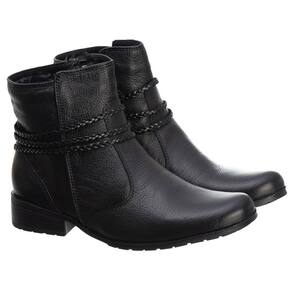 Bota Feminina Couro Cano Curto Lisa Detalhe Trançinhas Laterais Solado Borracha Macia - 37 - Preto