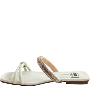 Tamanco Rasteira Feminino Casual com Strass Bico Quadrado Moleca 5462.128 - 36 - Branco