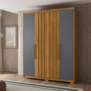 Guarda Roupa Solteiro 4 Portas 3 Gavetas Ripado California Moval - Cinza