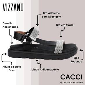 Possui detalhes de strass que adicionam um toque de glamour e sofisticação ao design, tornando esta sandália um destaque no seu guarda-roupa. Seu fechamento com tira aderente não só oferece um ajuste seguro, mas também facilita o calce e o descalce.