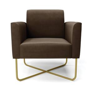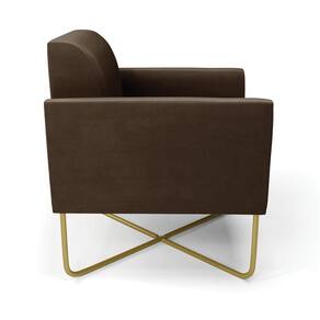 Kit 2 Poltronas Base X Industrial Dourado Marisa Suede D03 - D`Rossi - Marrom Escuro